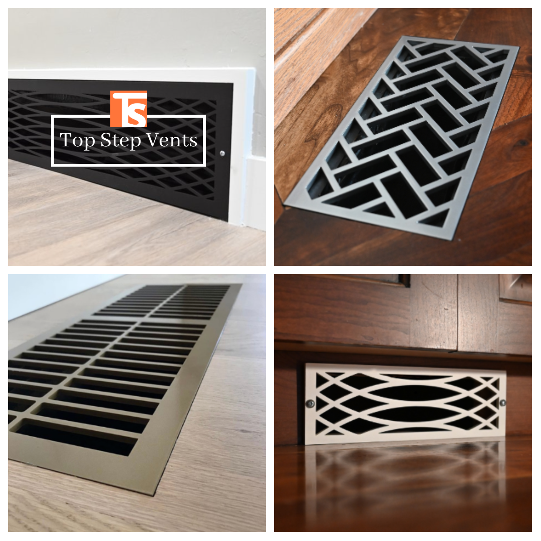 From a family-owned wood flooring company to a family-owned vent company, Top Step has taken it to the next level. Their beautiful Flush Mount, Baseboard and Toe Kick Vents are available in a variety of decorative designs and color options. They feature a powder coat finish, offer 96-98% air flow and are proudly made in the USA!
