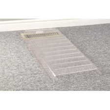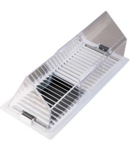 Direct airflow away from your walls and up into the room. This clear plastic Air Deflector fits on the top of your floor register using included magnets. The length of the Air Deflector can be adjusted from 10 inches to 14 inches, and the width of the product is 4 1/4″. Because magnets are used to hold the deflector in place, it is best to use these with a metal registers.